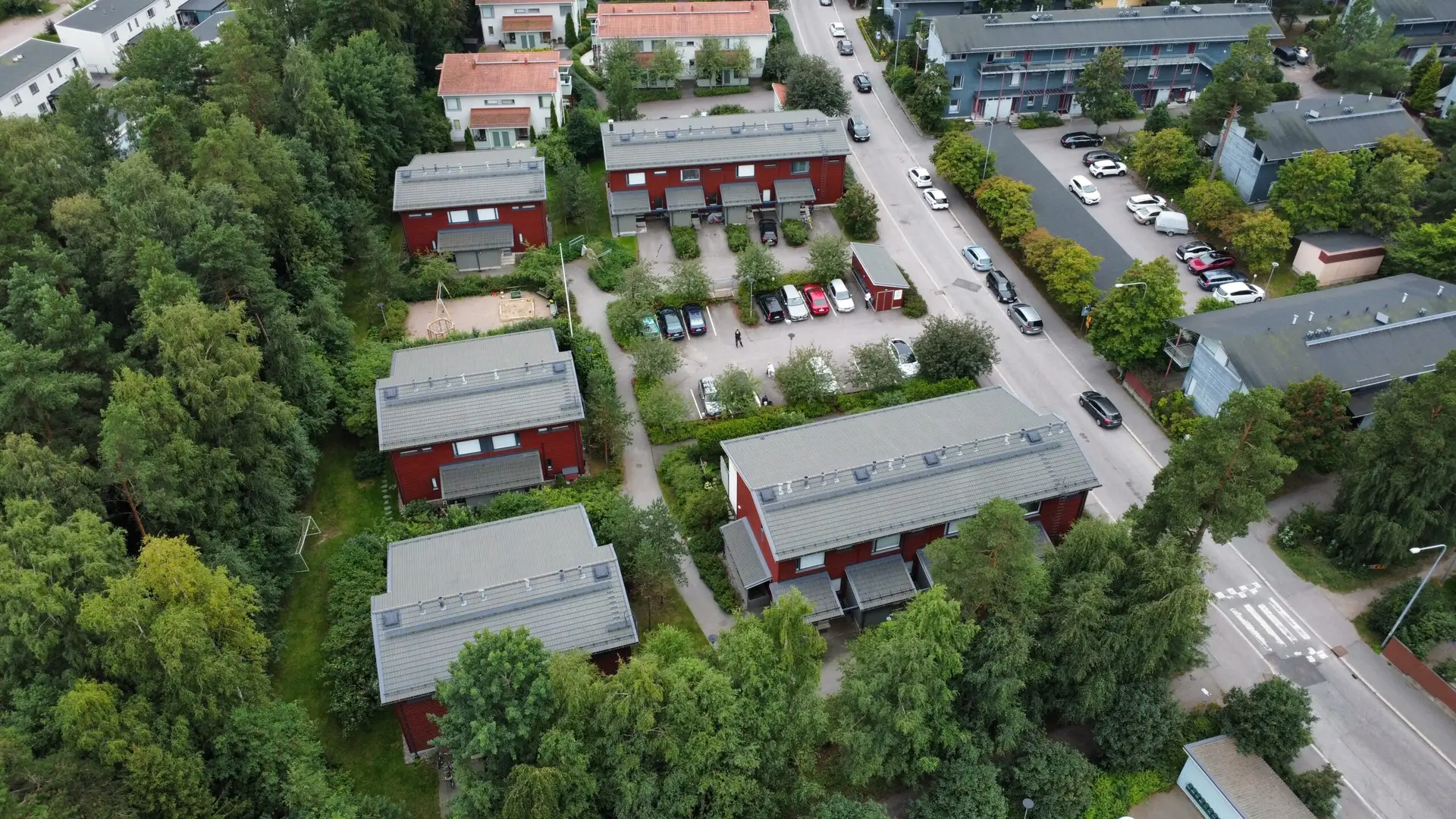 Tuusulassa sijaitsevassa kohteessa toteutimme taloyhtiön 8kpl erillistalon, 2kpl roskakatoksen ja väestönsuojan julkisivujen puuosien huoltomaalaustyöt.
