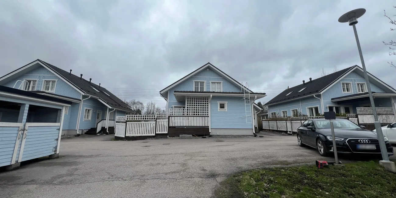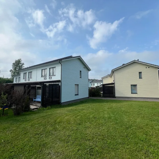 Tässä kohteessa toteutimme kolmen paritalon julkisivujen puuosien huoltomaalaustyöt.